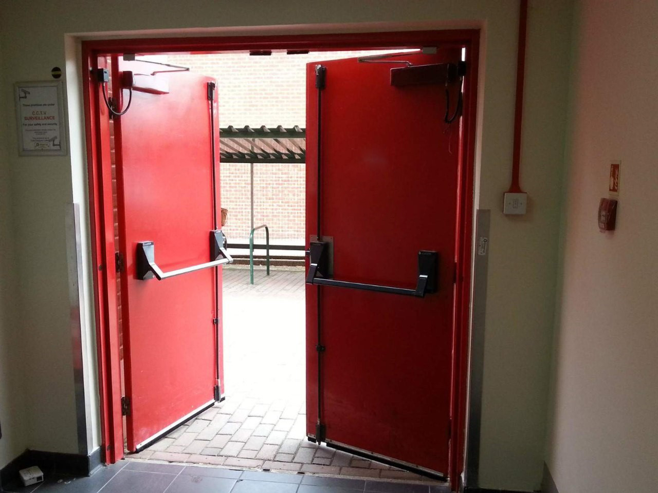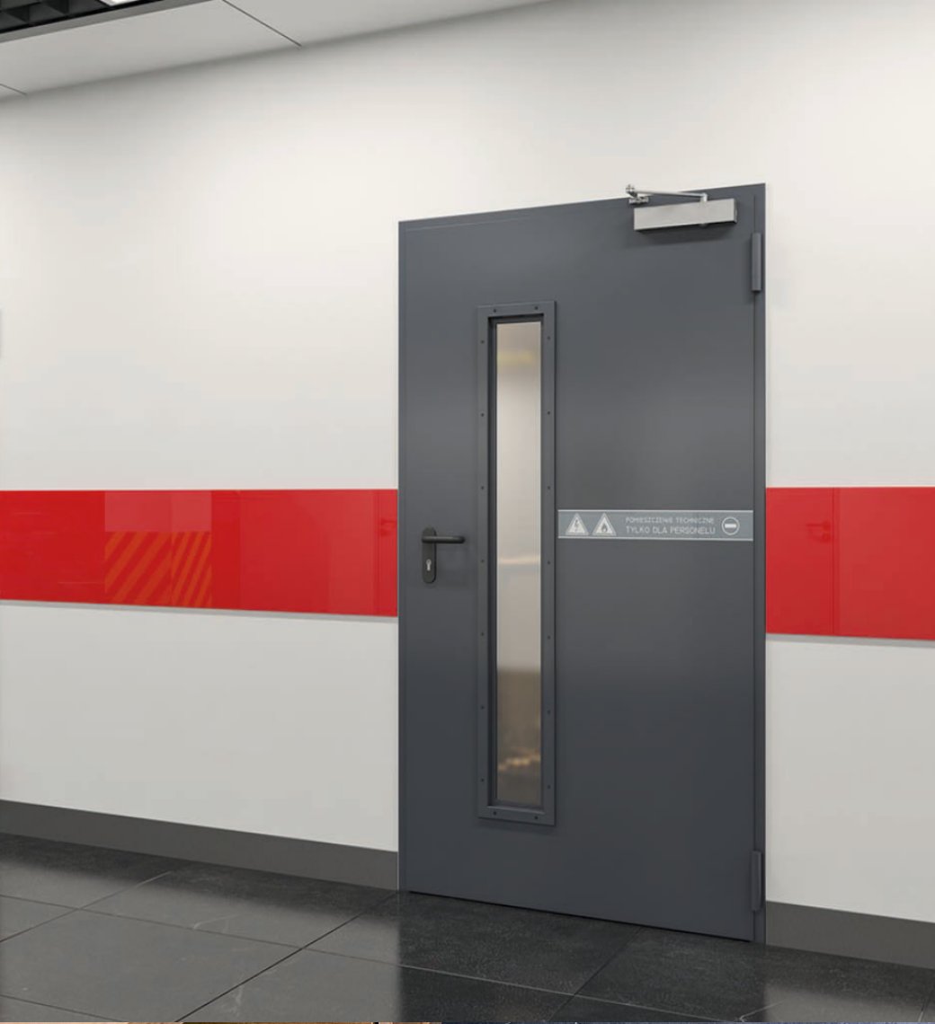 От качества заполнителя зависит, насколько эффективно преграда будет препятствовать распространению высоких температур. Материал должен быть негорючим и стойким к температурным воздействиям. В комплектацию противопожарной алюминиевой двери также входят уплотнители, ручки, замки и иные элементы фурнитуры. Дополнительные фурнитурные детали: доводчики, отбойные пластины, пороги разных типов.